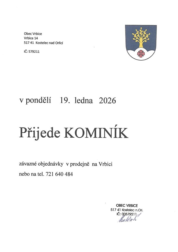 Opět je pro občany obce zajištěn kominík na pondělí 19. ledna. Je nutno se ale závazně objednat!