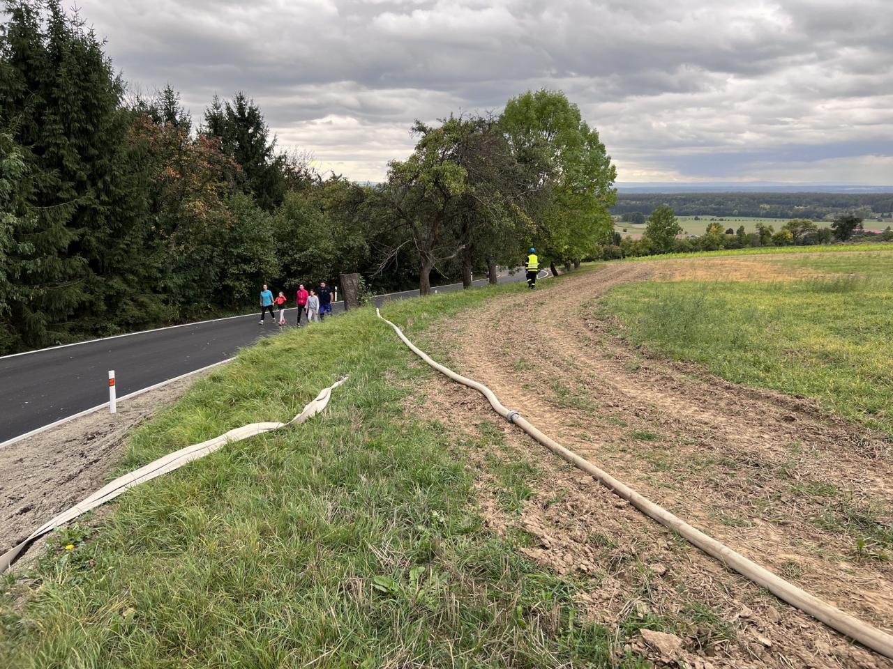 Hasičský okrsek Lhoty u Potštejna uspořádal první cvičení dálkové dopravy vody ze Chlen na Vrbici k vodárně.